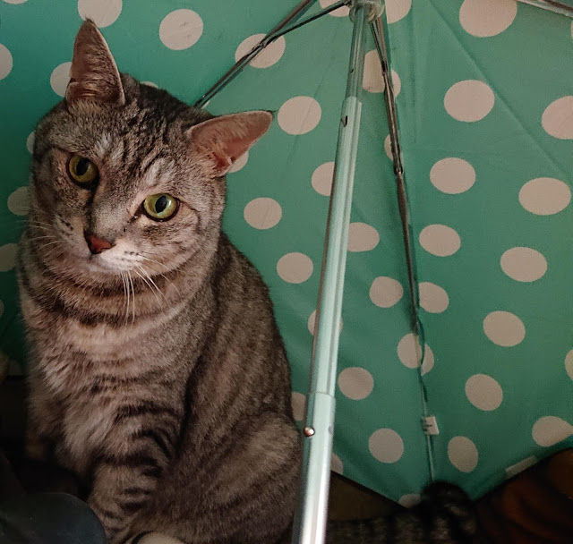 傘を広げておくと、どんなに狭くてもおもむろにやってきます。